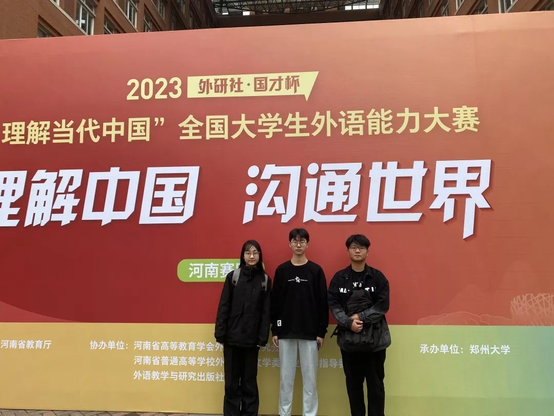 11月3日-12日,2023年“外研社·国才杯”“理解当代中国”全国大学生外语能力大赛英语组河南省复赛分别在郑州大学和河南中医药大学举行,我校古天乐太阳集团城2021级商务英语专业桂紫欣获得英语口译大赛一等奖,古天乐太阳集团城2021级英语专业樊佳林获得英语演讲大赛一等奖,古天乐太阳集团城2020级商务英语专业陈文冰、古天乐太阳集团城2020级英语专业刘甜分别获得英语笔译大赛和英语写作大赛二等奖,英语专业刘世豪获得英语口译大赛优秀奖,工学部物联网工程专业宋逸宸和古天乐太阳集团城物流管理专业史鹏飞获得英语写作大赛优秀奖,古天乐太阳集团城法学专业杨美玲获得英语阅读大赛优秀奖。