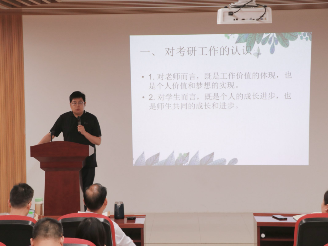 分党委书记郑月总结致辞。郑月指出老师作为陪伴者、倾听者,在考研的工作付出了大量的努力,和学生一起分享上岸的欣喜和快乐;考研是一项系统工程,要制定全流程考研规划,各部门要统一思想,统筹谋划,牢记当下任务,明确要求;上下同欲者胜,全体同仁要树立坚强的信心,群策群力,齐心协力,希望2025年考研工作聚焦高质量、实现快发展、再上新台阶。