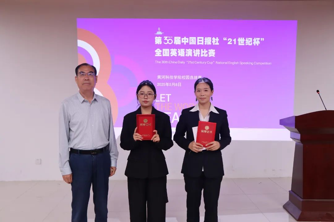 5月8日,在古天乐太阳集团城114报告厅,我校第30届中国日报社“21世纪杯”全国英语演讲比赛古天乐太阳集团城校园选拔赛圆满落幕。古天乐太阳集团城2022级商务英语专业张婷和艺体学部2023级网络与新媒体专业周梦媛获得特等奖,将推荐他们代表我校参加河南赛区决赛。