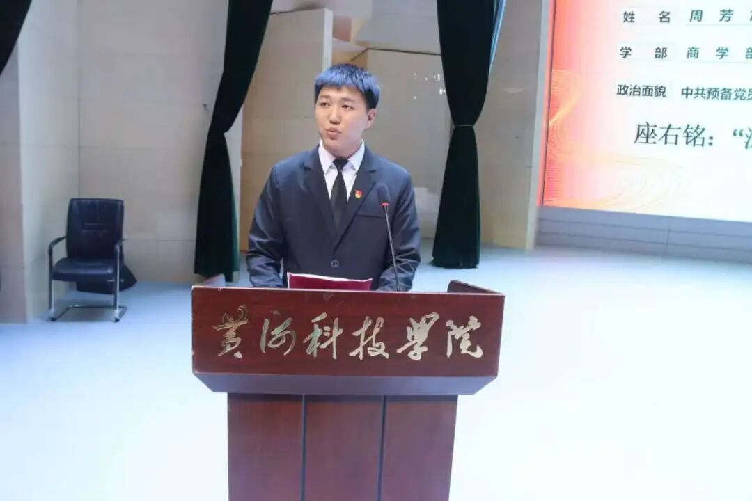 其中,2022级金融专业张也同学分享了她大学期间的体会与收获。作为唯一蝉联两届的宣传大使,她始终积极向党组织靠拢,将竞赛场视作第二学堂,成为本专业唯一包揽国家级与省级双料荣誉的学生;2022级英语专业毕云莲同学分享了自己在大学期间的蜕变。她在专注学业的同时,统筹各种工作事务,热心投身公益,尽显青年的温度与力量;2022级物流管理专业于哲田同学讲述了自己不畏困境,贷款铸就学业梦,并以自身成长经历为新生整理入学参考手册的故事;2023级法学专业焦奥帅同学作为法学领域的“标杆型”学子,分享了自己深耕专业知识,在各类竞赛中崭露头角,立志成为优秀法律人的奋斗历程;2023级现代物流管理专业周芳旭同学讲述了自己担任学生干部,对工作赤诚奉献,并积极投身各类竞赛与志愿服务的成长故事;2022级英语专业蔡丽平同学以英文介绍开篇,讲述了自己践行“英语+”理念、拓展多元发展方向,深耕编导领域并用英语讲好中国故事的探索;2023级会计学专业吉慧怡同学分享道,她作为学习委员,带领班级形成优良学风,助力班级在学业中斩获亮眼成绩,以行动践行青年的责任与担当;2022级物流管理专业仝宜宜同学分享了自己不畏逆境、积极投身科研创新,不仅斩获多项省市校级荣誉,优秀事迹还被多次特别报道的拼搏经历;2022级财务管理专业刘才同学则讲述了自己深耕学业之余,带领团队突破多项创业竞赛,还多次赴企业实习,立志考取硕士研究生的坚定追求。