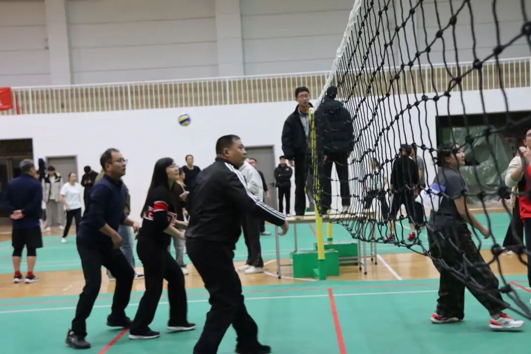 1队由韩瑞萍、冉俊伟、姜舒畅、樊永先、尹沛东、单士华、郑丽、王蒙蒙8位教师组成,他们褪去讲台的严谨,换上轻便运动装,带着满分热情奔赴赛场,用运动活力为深秋校园注入满满元气。樊永先老师发球利落有力,一次次精准出击拉开进攻序幕;冉俊伟老师凭借灵活跑位巧妙衔接,攻防转换间尽显默契;韩瑞萍书记、单士华老师更是毫不示弱,奋力扑救每一个险球,轻盈身影在赛场穿梭;单士华、王蒙蒙默契拦网筑牢防线;冉俊伟、尹沛东、樊永先每一次起跳、扣杀、扑救都透着专注与拼劲。