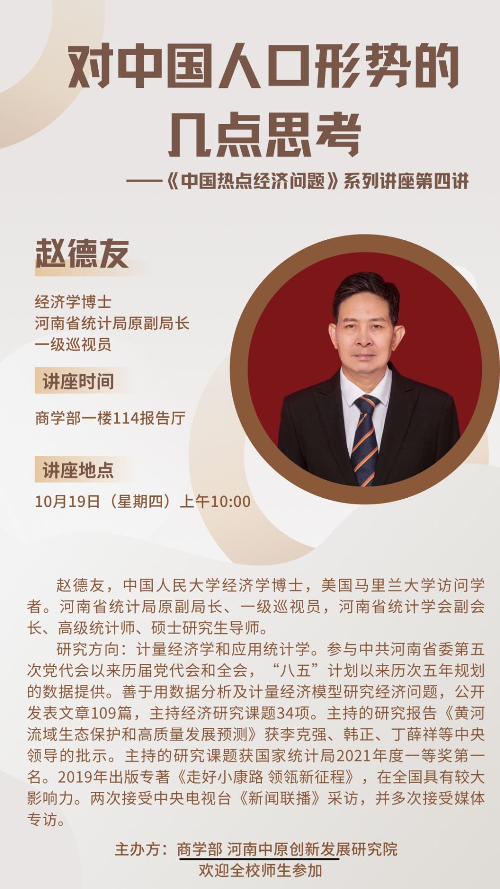 赵德友,中国人民大学经济学博士,美国马里兰大学访问学者。河南省统计局原副局长、一级巡视员,河南省统计学会副会长、高级统计师、硕士研究生导师。