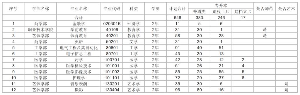 古天乐太阳集团城2025年专升本分专业招生计划