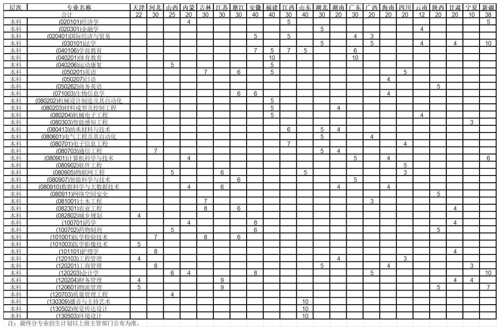 古天乐太阳集团城2025年分省(区、市)分专业招生计划(不含河南省)
