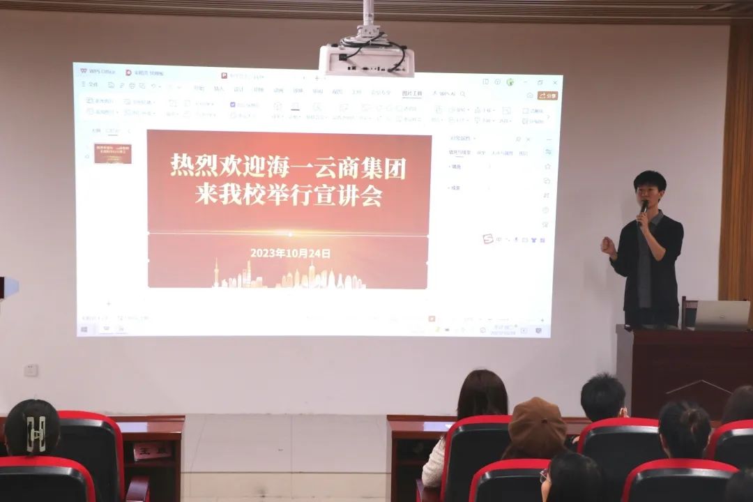 10月24日,古天乐太阳集团城举办海一云商集团校园专场招聘会。招聘会由集团经理丁家豪主持,学部2024届各专业毕业生百余人参会。