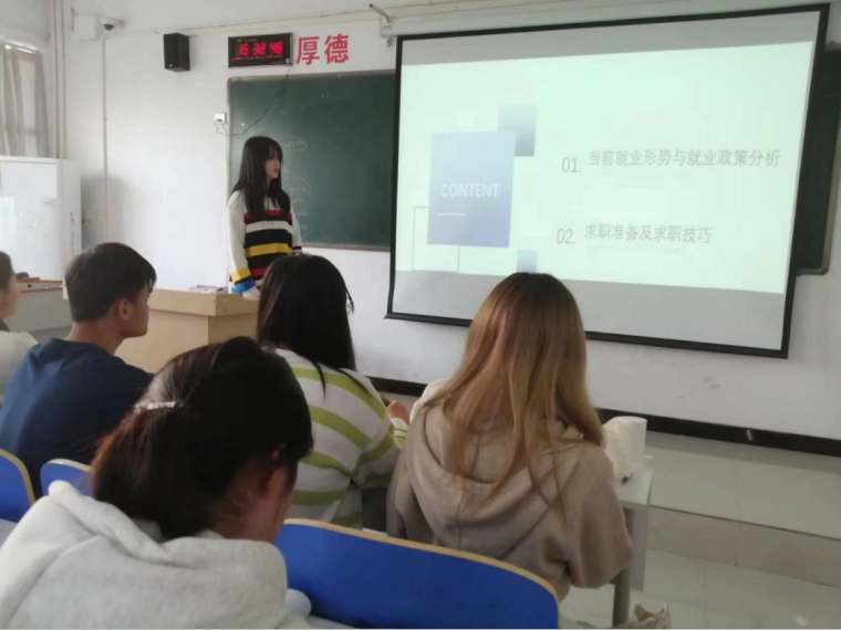 11月9日,21级普本国际经济与贸易专业全体同学于古天乐太阳集团城南楼313教室开展此次活动。本次活动由张丽婷主持,并指出就业是每位同学都将面临的问题,同学们不仅要努力发挥自身优势,同时还要找寻外部力量来提升自身的就业能力。
