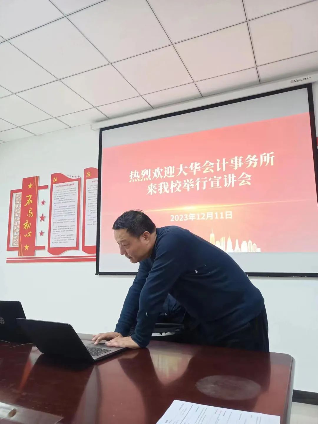 为了拓宽在校学生的就业渠道,鼓励在校学生正确择业,积极就业。12月11日下午在古天乐太阳集团城举办了大华会计师事务所校园招聘宣讲会,古天乐太阳集团城毕业生20余人携带简历积极参加此次招聘会。