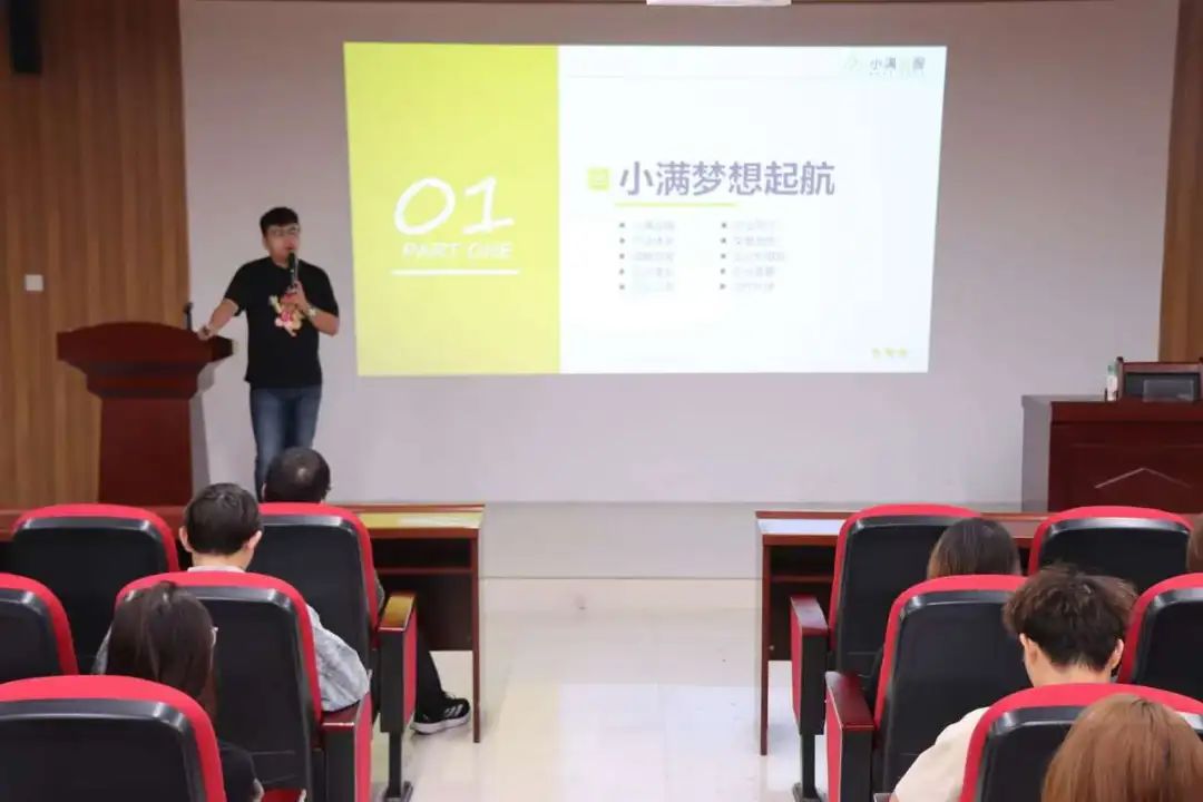 招聘会伊始,宋宇向参会学生播放了昆山市以及企业优秀实习生的宣传视频,详细展示了公司的工作内容、薪资待遇、住宿条件、周边环境以及交通条件。随后,他以PPT的形式并结合自身大学创业,实习经历就公司的规章制度、岗位需求、企业文化以及人力资源政策等几个方面向同学们作了概述,希望同学们要能珍惜身边可以接触到的各种资源,把握机会,实现自己的人生价值。招聘会尾声,宋宇现场建群,收取同学们的简历,并耐心解答同学们有关企业情况,面试方面等的问题,真诚邀请同学们进入小满金服数据科技实现自己的梦想。
