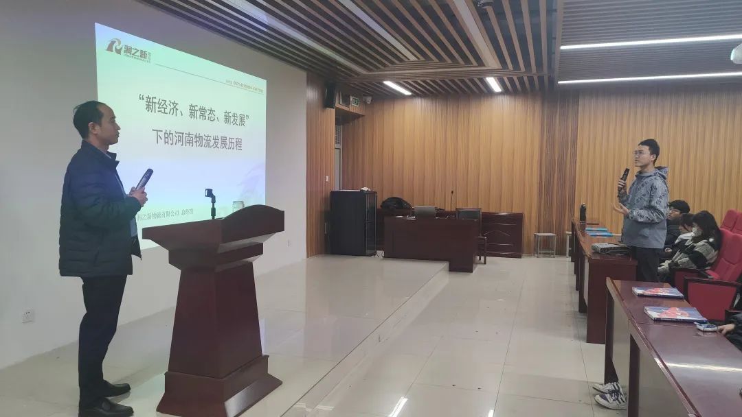 在和学生互动环节,张志强回答了学生提出的润之新物流的发展转型历程问题,回答了同学提出的“女生在物流行业的就业趋势”,并结合其就业经历及实践经历分享道物流行业的女生在物流行业中没有劣势且有很好的发展趋势。