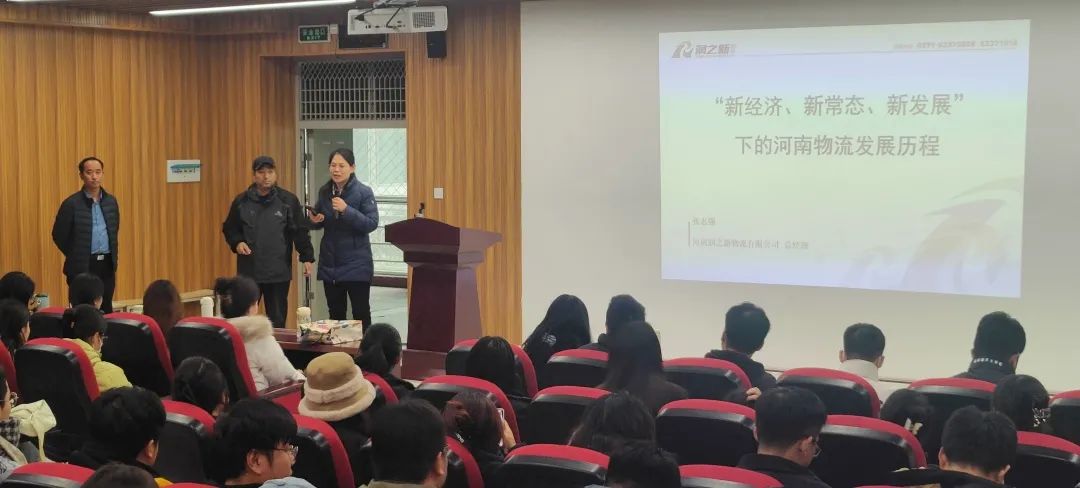张志强从郑州市物流园区的发展与现状、物流集聚区的发展历程、物流园区的现状与发展趋势和人才建设四个方面进行分享交流。他详细介绍了目前郑州物流园的发展及近几十年的发展与变迁,以及物流园区不断集中化靠近107国道、紧邻港区发展的得天独厚的交通区位优势,分析了当前物流企业岗位级待遇;并就学生就业方向和就业岗位及与指导。