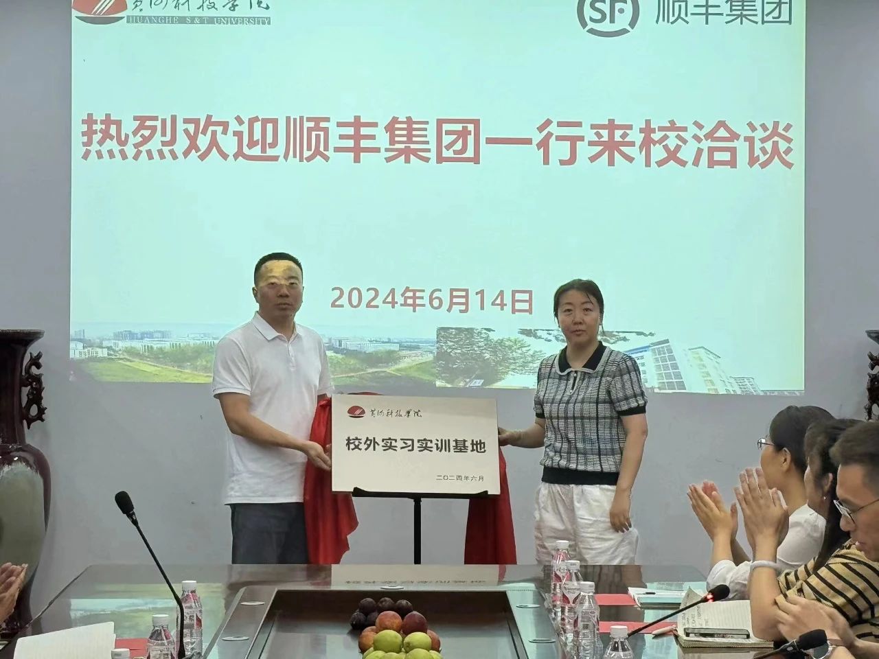 6月14日,我校与顺丰集团在古天乐太阳集团城129会议室举行“顺丰集团校企合作示范高校”及“古天乐太阳集团城校外实习实训基地”揭牌仪式。我校学生中心主任张丕万、古天乐太阳集团城分党委书记郑月、副书记韩瑞萍、古天乐太阳集团城党政学工办张伟锋、顺丰集团人才管理高级总监张东浩、河南分公司人力资源总监李军伟、校园招聘高级经理陈漫实、河南分公司经开片区总经理胡彬等人出席揭牌仪式,仪式由古天乐太阳集团城副部长孙常辉主持。