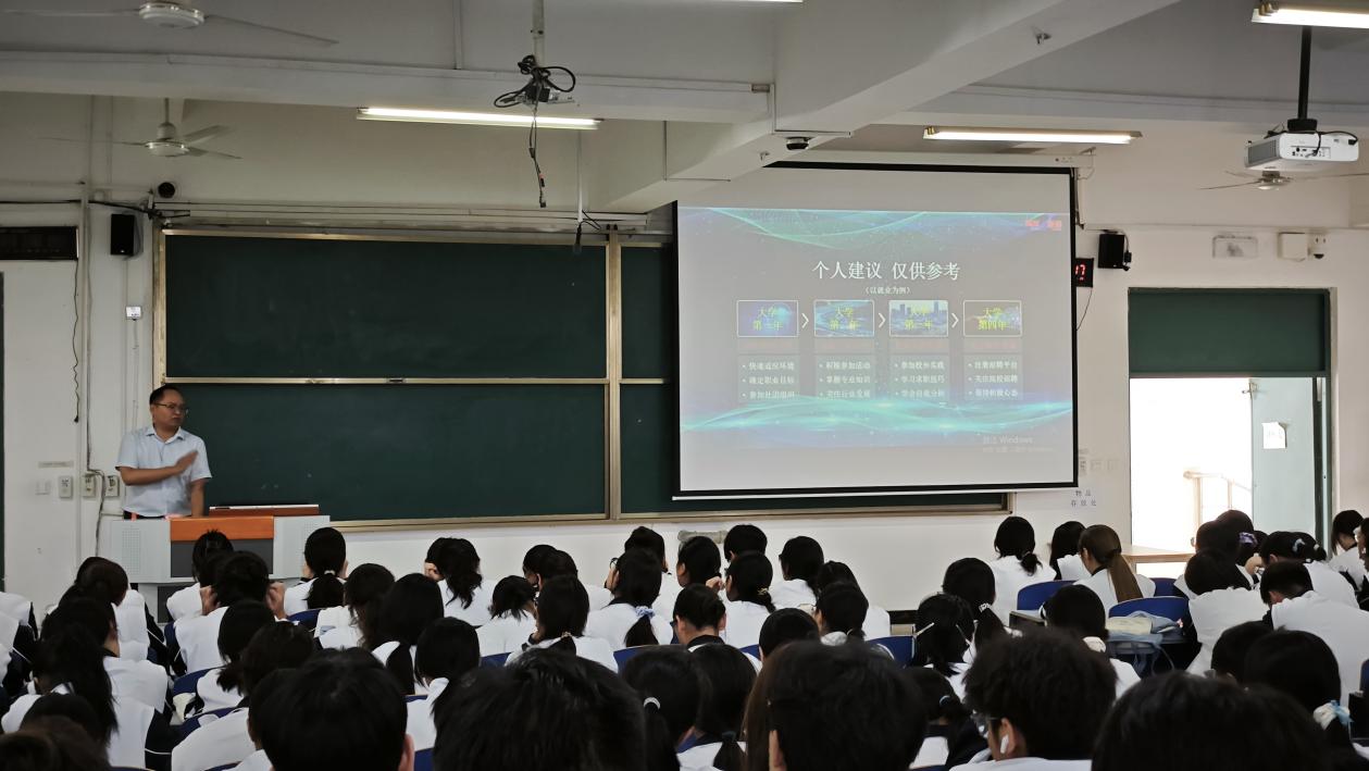 随后,李鹏飞聚焦数字人才生涯规划,从大学四年不同阶段的发展重点展开分享。他建议大一新生快速适应大学环境,确定职业目标并积极参与社团组织,为大学生活与未来职业发展筑牢基础;大二学生应主动投身各类活动,扎实掌握专业知识,同时密切关注行业动态,拓展自身视野;大三时要积极参加校外实践,学习求职技巧,学会自我分析,在实践中提升综合能力;大四则需关注招聘平台与校园招聘,以积极心态迎接就业挑战。