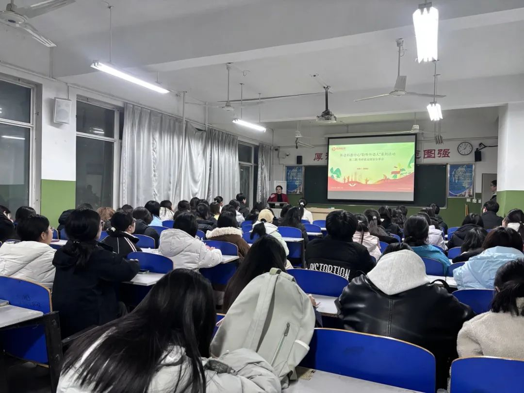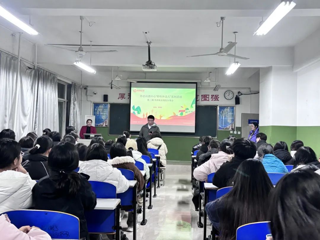 12月15日,外语科教中心邀请优秀校友,河南富跃教育咨询有限公司总经理程玉红为学生做就业规划分享会。外语科教中心主任贾和平和辅导员张薇薇老师参加了本次活动。
