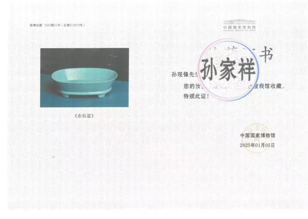 2025年1月,其与父亲,也是汝瓷创作的导师孙现锋共创的汝瓷作品《水仙盆》更被中国国家博物馆收藏,这一殊荣不仅是对其“天青釉色,火中凝华”技艺的肯定,更让千年汝瓷在现代殿堂焕发新生。这一次国博的收藏,不仅是对过往的礼赞,更标志着千年汝瓷,在国家级殿堂之中,找到了一个面向璀璨未来的全新起点。未来,他要将汝瓷所有传世器型复刻回中国,让全国人民见证宋代汝瓷的辉煌,让真正的汝瓷被中国人民所见证!