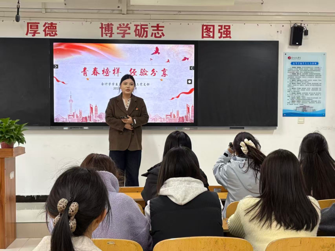 为进一步强化支部党员的先锋模范担当作用,会计学学生第一、二、三党支部于11月30日在304教室联合举办“青春榜样,经验分享”主题交流活动。活动以青年榜样的成长事迹为纽带,旨在引导全体党员汲取奋进力量,在学习与生活中主动作为、争当标杆,切实发挥党员的示范引领作用。