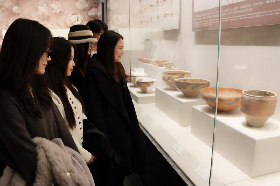 河南博物院馆藏文物数量丰富、品类齐全,从远古彩陶到商周青铜,从唐宋瓷器到明清书画,每一件文物都凝结着先民的智慧。学员们依次参观了“远古家园”“华夏王都”“隋唐大运河”等展厅,近距离观摩了贾湖骨笛、妇好鸮尊、云纹铜禁等“镇院之宝”。当驻足于记录着中原文明发展脉络的文物前,学员们不时交流讨论,在触摸历史温度的过程中,对“何以中国”的文明根脉有了更深刻的理解。