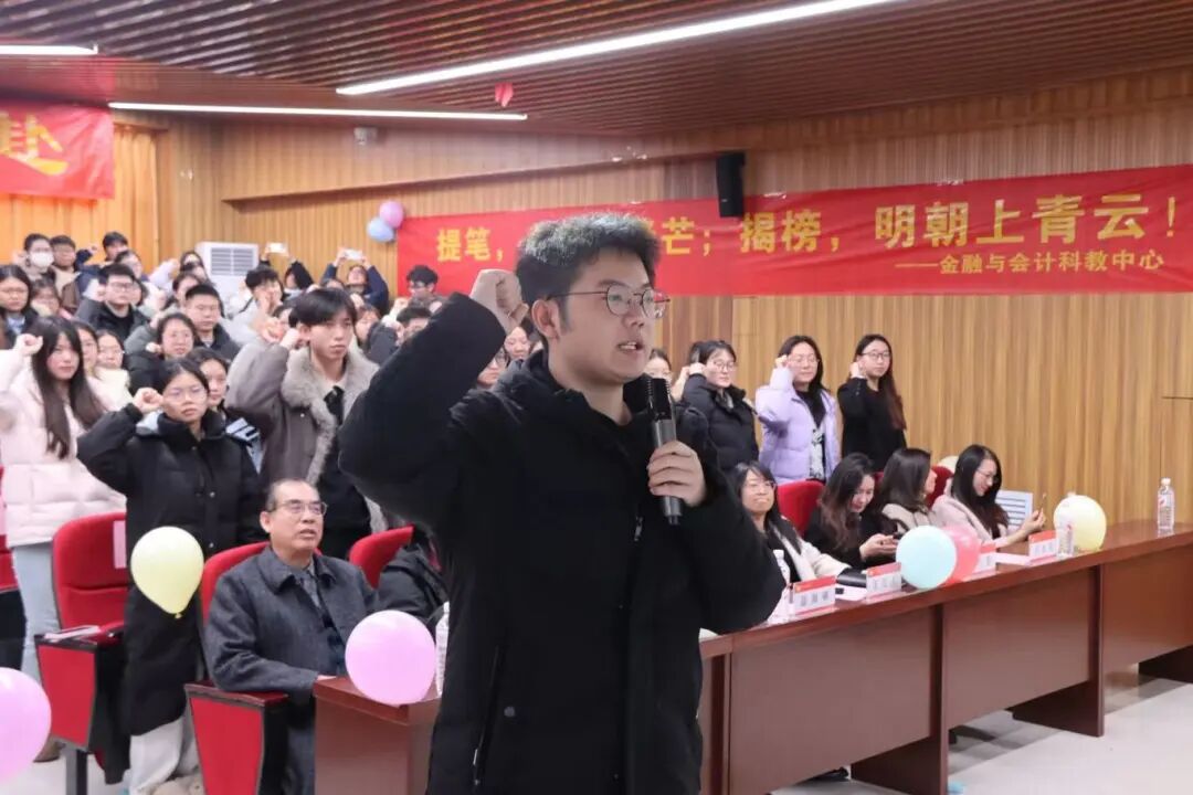 此次考研誓师大会的圆满举行,不仅为考研学子们缓解了压力、凝聚了力量,更传递了学校与学部的深切关怀。相信在最后的冲刺阶段,金融与会计科教中心的考研学子们定能以破釜沉舟的勇气、坚韧不拔的毅力,在考研战场上书写属于自己的辉煌,成功圆梦!