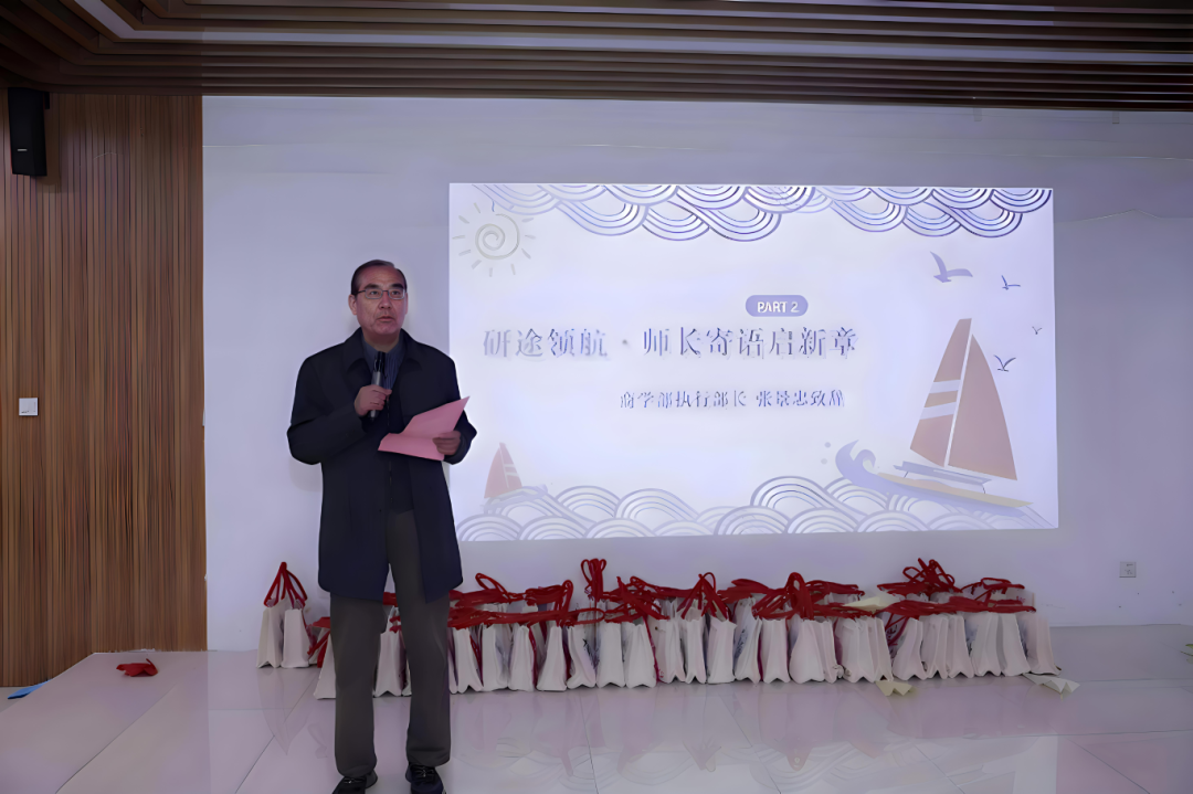 大会伊始,考研学子有序签到并抽取盲盒内的考研导师们的寄语祝福卡片,一句句温情话语,寄托着学部对学子金榜题名的美好期许。随后,现场播放学部领导与教师的专属祝福视频,真挚的叮咛与暖心的鼓励,让学子深切感受到师长的殷切关怀,为冲刺之路筑牢信心根基。