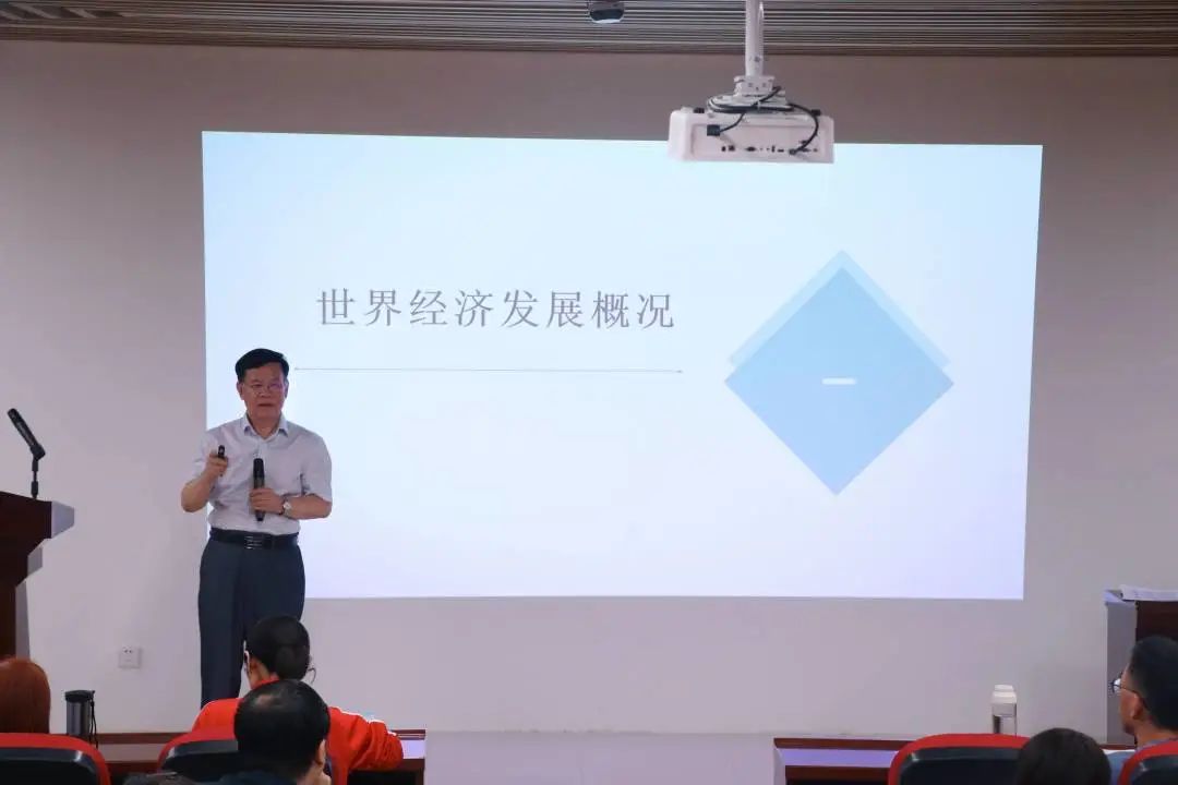 喻新安教授的讲座分为世界经济发展概况、中国经济发展情况、河南省经济发展情况、当前经济发展热点问题、未来经济发展走向与对策五个部分。