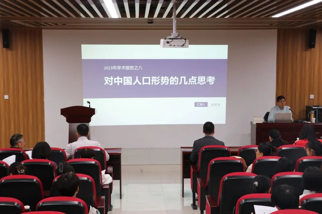 赵德友首先从中国历次人口普查情况、2020年第七次人口普查数据和2021-2022年1‰人口抽样调查数据三个方面详细介绍了2020年以来全国主要人口数据的情况, 指出2020年以来人口数据的特点为:总和生育率低、出生人口大幅度下降、死亡人口平稳增加、自然增加人口大幅度下滑、人口老龄化进一步加剧。接着,赵德友通过第七次人口普查数据和人口抽样调查全面分析研判了2020年以来的人口数据,他指出,2020-2022年中国人口数据受疫情影响较大、2023年中国人口数据仍然处于非常态、2024年后中国人口数据将恢复常态。随后,赵德友对低生育率的原因和影响进行了分析,他认为,我国总和生育率、出生人口连年走低的主要原因在于结婚难、成本高、养育成本高、入托就学就业难、生育观念变化较大、生不出孩的人越来越多以及新冠肺炎疫情迟滞了生育计划;他指出,低生育率会对我国经济社会产生重大影响,会造成人口负增长、人口老龄化、人口红利逐渐失去、养老育幼负担加重和社会保障压力增大。最后,面对人口形势的新变化,赵德友从四个方面提出了应对之策,分别是:采取具体政策促进生育、降低幼儿养育教育成本、实施积极应对人口老龄化国家战略和渐进式延迟法定退休年龄。