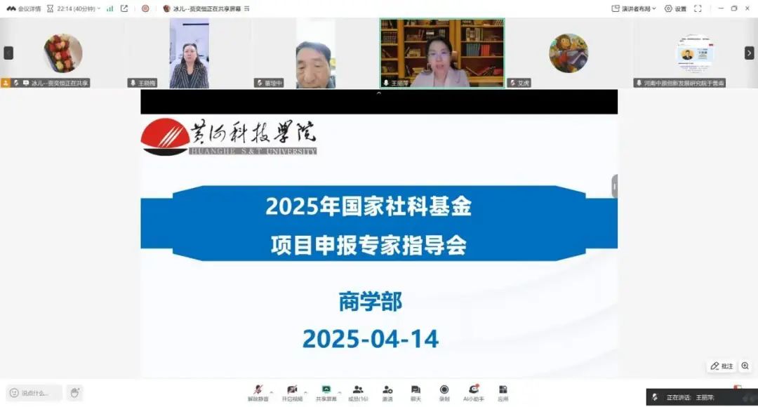 在交流环节,三位教师就各自申报书中的相关问题与王教授展开了深度探讨。于善甫教授表示:“王教授的线上指导打破了空间限制,其‘一对一’精准点拨不仅提升了教师们对申报流程和要点的认知,还为申报教师厘清了思路、明确了方向,令人受益匪浅。”与会教师通过实时聊天框积极提问,现场学术氛围热烈。