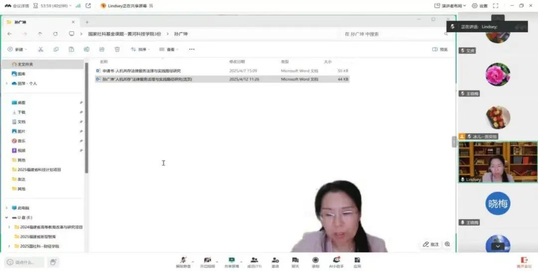 王晓梅副部长在总结中表示,此次线上指导会充分彰显“互联网+科研”的高效协同优势,学部后续将建立“专家-团队”长效对接机制,通过三轮论证、多轮打磨持续提升申报质量。她勉励教师们以“钉钉子精神”深耕研究领域,力争在国家社科基金立项中实现质与量的双突破。