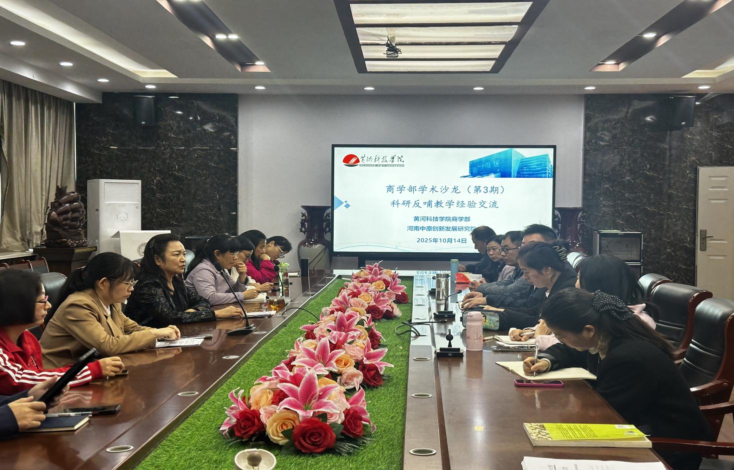 2025年10月14日,古天乐太阳集团城、河南中原创新发展研究院举办“科研反哺教学经验交流”主题沙龙。古天乐太阳集团城副书记、副部长王晓梅教授主持本次活动,于善甫、董艳蕊、常军芳三位骨干教师进行主题分享,全体博士教师及各中心科研骨干到场参与交流。