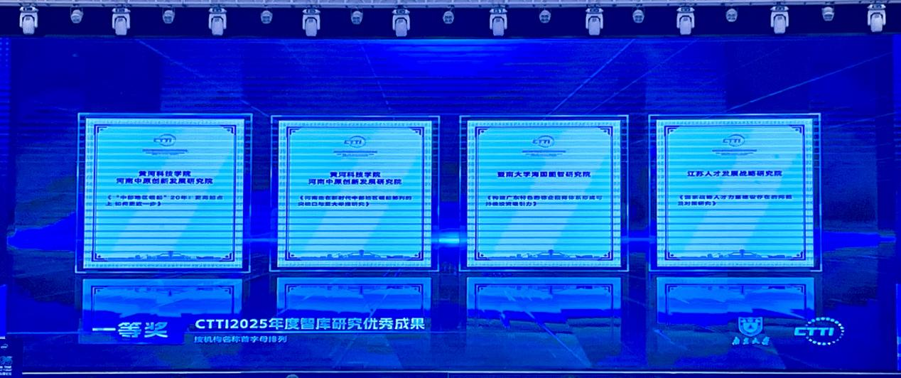 河南中原创新发展研究院自入选中国智库索引(CTTI)来源智库以来,已连续5次获奖,共荣获12个奖项,位居河南省高校智库前列。未来,研究院将秉持“顶天立地 务实超越”的办院理念,持续深化“三个转变”,即思维方式转变、研究范式转变、表达方式转变,切实担当起“决策方案的建言者、政策效果的评估者、社会舆论的引导者”之重任,在咨政建言、理论创新、舆论引导、社会服务等方面实现新突破、展现新作为,为推进中国式现代化提供更多更强的理论和智力支持。