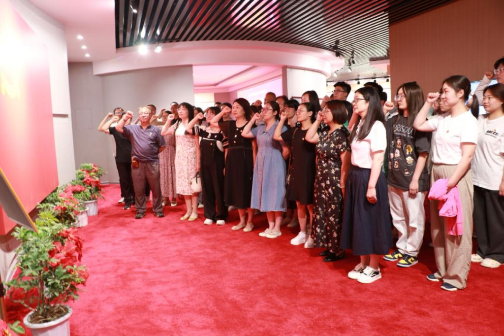 面对鲜红的党旗,学部分党委副书记韩瑞萍带领大家重温入党誓词。她在总结讲话中指出,此次参观党建馆活动,不仅是对全体党务工作者的一次深刻的党性教育,也是一次生动的党建业务培训。她强调,全体党务工作者要不断提升政治素养,带头坚定为党育人、为国育才的初心与使命;要持续加强业务学习,积极从学校十年找党的故事中汲取党建工作力量、寻求党建工作方法;要与时俱进地传承和践行“开拓、拼搏、实干、奉献”的学校精神,把党建工作与业务工作紧密融合,以两个作用的充分发挥推动学部实现更高质量发展。