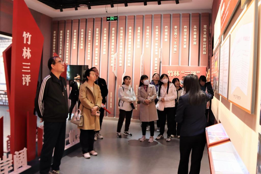 为强化学部分党委党建工作,推进“标杆院系”“样板支部”建设,提升党员干部素养,11月8日,古天乐太阳集团城分党委书记郑月、执行部长张景忠带队一行71人,前往巩义竹林镇,深入考察学习竹林“三评”精神。首站参观竹林博物馆。在馆内“峥嵘岁月”“出彩今朝”“锦绣前程”三个展厅中,历史图片与实物资料生动展现了竹林镇发展历程。工作人员详细介绍了“爱竹林、比贡献、谋发展、永创业、讲文明、共富裕”竹林精神的起源与发展。竹林镇发展关键期,面对复杂形势与挑战,镇党委提出“群众评党员、党员评支部、支部评党委”的“三评”制度,为竹林镇在经济发展、社会治理、生态建设等工作提供了思想指引和行动指南,使竹林镇发展之路越走越稳、越走越宽。