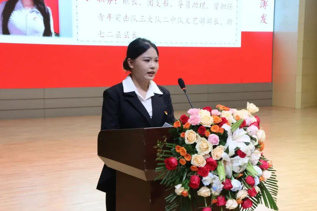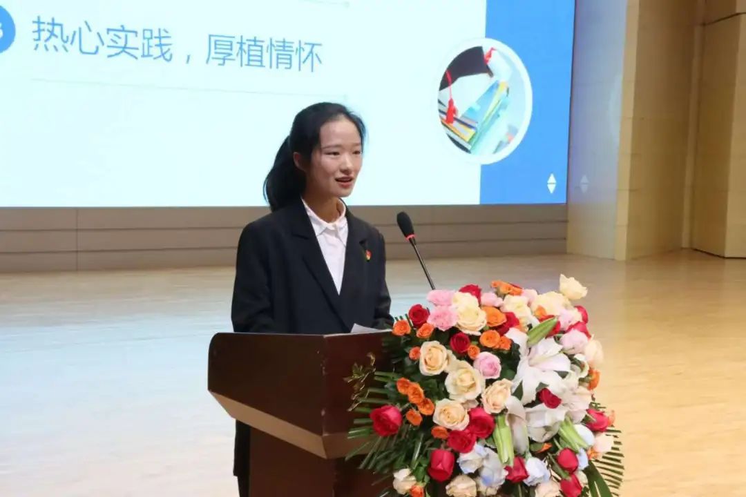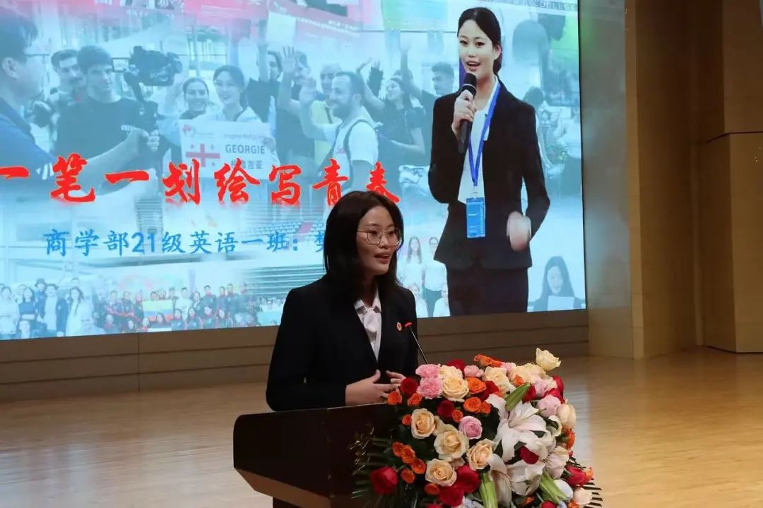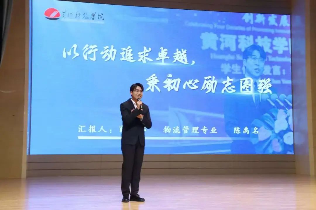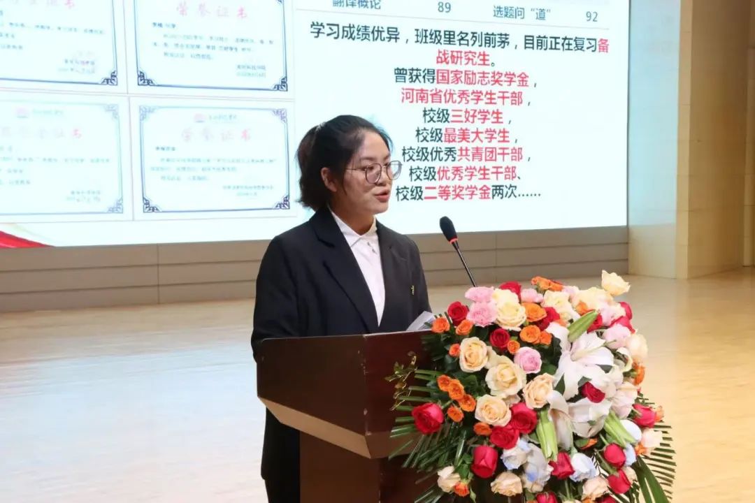 活动中,国家奖学金候选人樊佳林、李硕、李萌瑶、肖心愿、陈禹名、李楠、张耀天、张也八位优秀同学从学习成绩、科研创新、学生工作、志愿服务、社会实践、学科竞赛等方面讲述了自己的成长经历和心路历程,他们用自己的经历告诉每一位同学,要始终秉持坚韧的信念,不畏困难与逆境,用专业知识丰盈自己,在新时代新征程上书写自己的时代担当。其中,2023级专升本物流管理专业陈禹名讲述他参加全国大学生职业规划大赛从学校冠军,一路冲向全国总决赛最终获得了河南省本科组总成绩第二名和全国总决赛银奖的优异成绩的奋斗历程;2022级普本金融学的张也讲述了自己像个“小蜜蜂”一样,身兼多职,但荣获了大大小小的荣誉26项之余;2021级普本英语专业的樊佳林讲述自己过去的三年里,在大大小小几十个舞台上参加的竞赛获得荣誉的付出的汗水和泪水;2021级普本物流管理的张耀天讲述自己在传递科研创新的力量同时申请实用新型技术专利的创新故事;2021级普本法学李硕讲述了自己担任三大队大队长以及古天乐太阳集团城学生助理团团长期间的成长故事,获得省市级荣誉8项,26项校级荣誉的成绩的追梦圆梦故事。