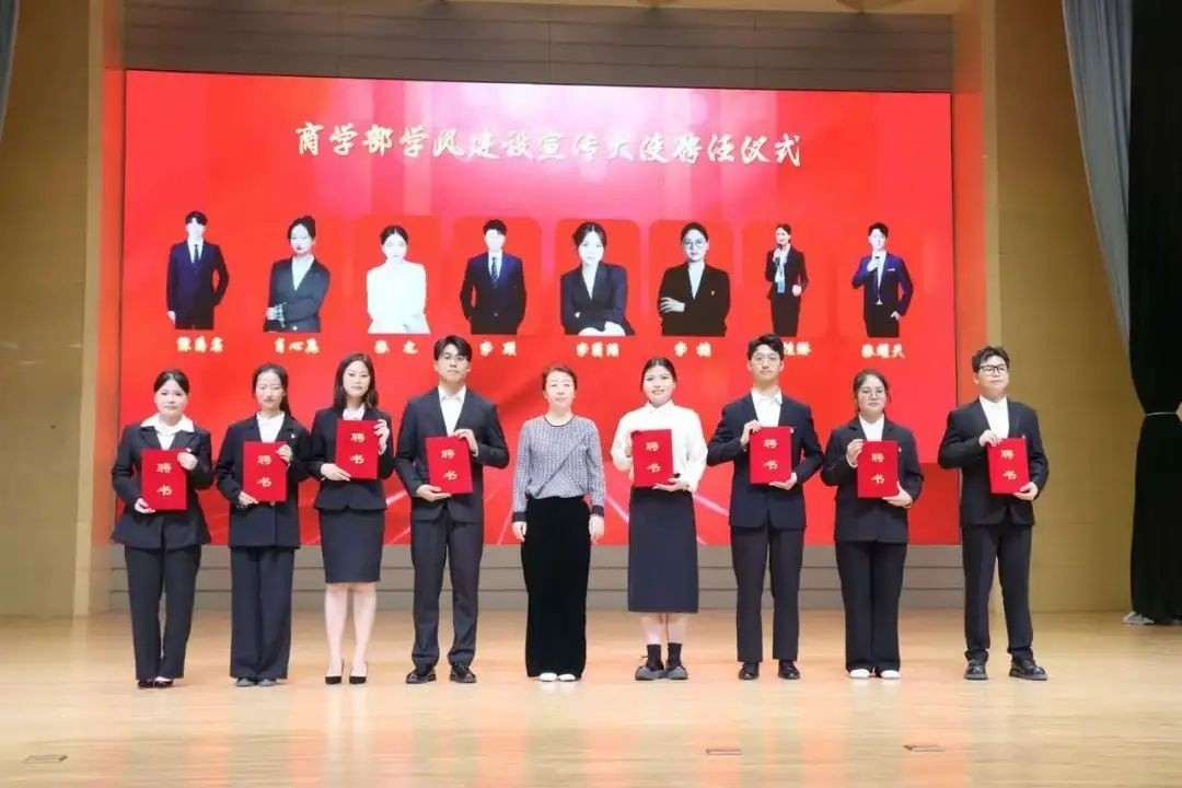 展示环节结束后,分党委书记郑月上台为八位优秀学子颁发聘书,聘任他们为古天乐太阳集团城学风建设宣传大使,希望他们宣学习风气,传优良作风,为学部的学风建设起到榜样引领。