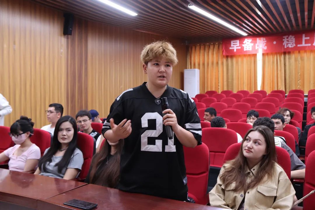 在互动环节,同学们就人际交往困惑,职业规划路径等问题进行踊跃提问。谢尔艾力以自身经历为例,鼓励同学们要在实践中积累经验,以开放心态接纳多元文化与观点,在交流中铸牢民族团结意识。