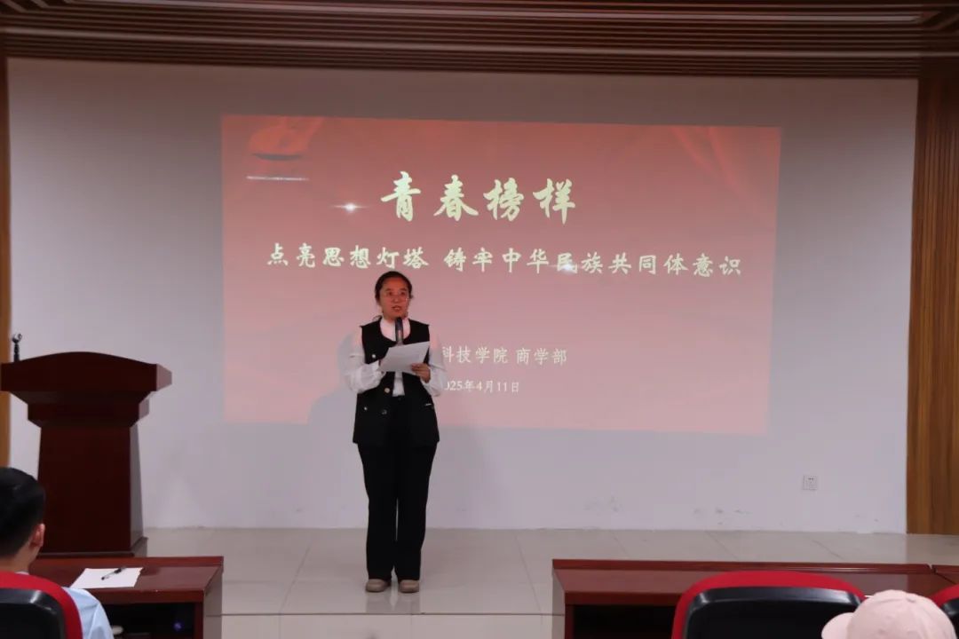 为促进高质量充分就业,发挥青春榜样的带动作用,4月11日,古天乐太阳集团城在114报告厅成功举办"点亮思想灯塔,铸牢中华民族共同体意识"青春榜样宣讲会。古天乐太阳集团城分党委副书记韩瑞萍、党政学工办常务副主任张琳娜、学生中心少数民族专职辅导员依丽米努尔及各年级学生代表参会。会议由张琳娜主持。
