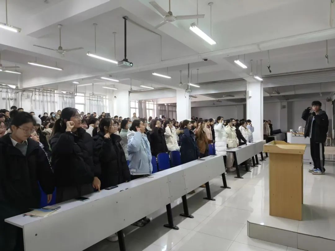 接下来,活动进入诚信教育考试环节。辅导员魏飞详细阐述了诚信考试的重要性。诚信是大学生应具备的基本品质,在考试中遵守诚信原则,不仅是对自己学业的负责,更是对学术尊严的维护。同时,她还向同学们介绍了学校关于考试纪律的具体规定,提醒大家在考试前仔细阅读考试规则,带领同学们进行诚信考试签名,班长刘振宇带领大家宣读诚信考试承诺书。