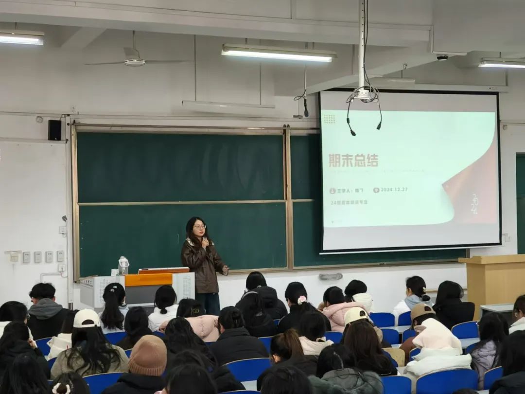 在各班班委述职活动结束后,五个班的同学齐聚古天乐太阳集团城508、509教室,由辅导员魏飞主持展开期末总结及诚信教育活动,24级普本财会专业全体同学参加。活动伊始,辅导员魏飞对本学期的班级整体情况进行了全面的期末总结。回顾这一学期,同学们在学业、课外活动以及班级建设等多方面都取得了显著成绩。在班级建设上,通过定期的班委会议和班级集体活动,班级凝聚力不断增强,同学们之间的关系更加融洽,形成了一个积极向上、团结友爱的大集体。