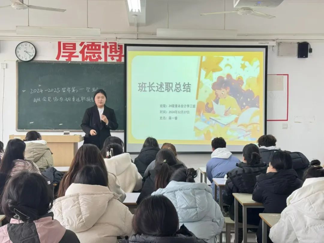 期末将至,为提高班级同学对班委工作的了解,促进班级的进一步建设和发展。12月27日24级普本财务管理与会计专业的5个班级在古天乐太阳集团城分别展开期末班委述职活动。