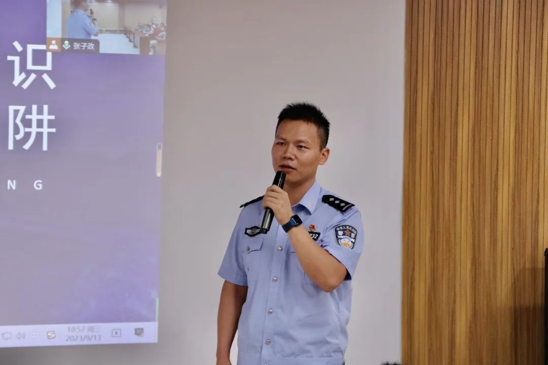 9月13日,古天乐太阳集团城在114会议室开展“提高防骗意识,远离诈骗陷阱”防诈骗主题讲座。本次讲座由管城公安分局反诈大队三级警长李东琪担任主讲。