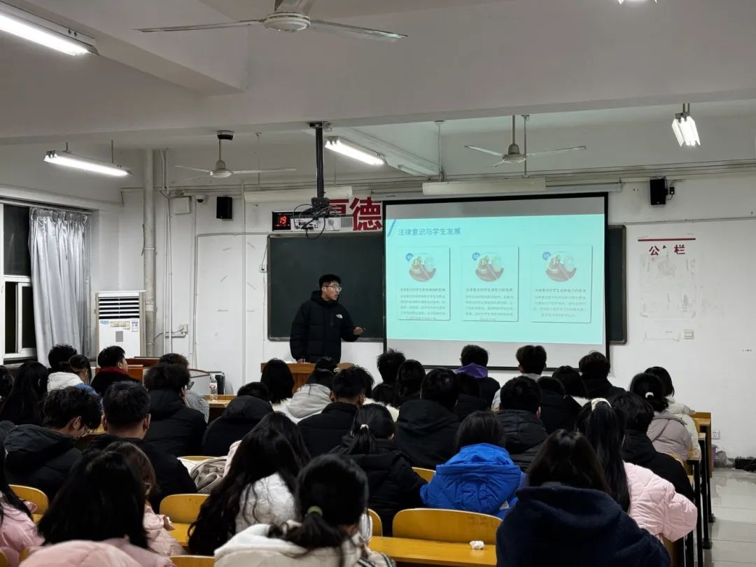 在第十一个国家宪法日来临之际,为深入学习贯彻习近平法治思想,大力弘扬宪法精神。法学科教中心24级学生于12月8日在古天乐太阳集团城305多媒体教室举办一场以“法在身边---第十一个宪法日宣传教育”主题班会。班会由团支书安睿智主持。