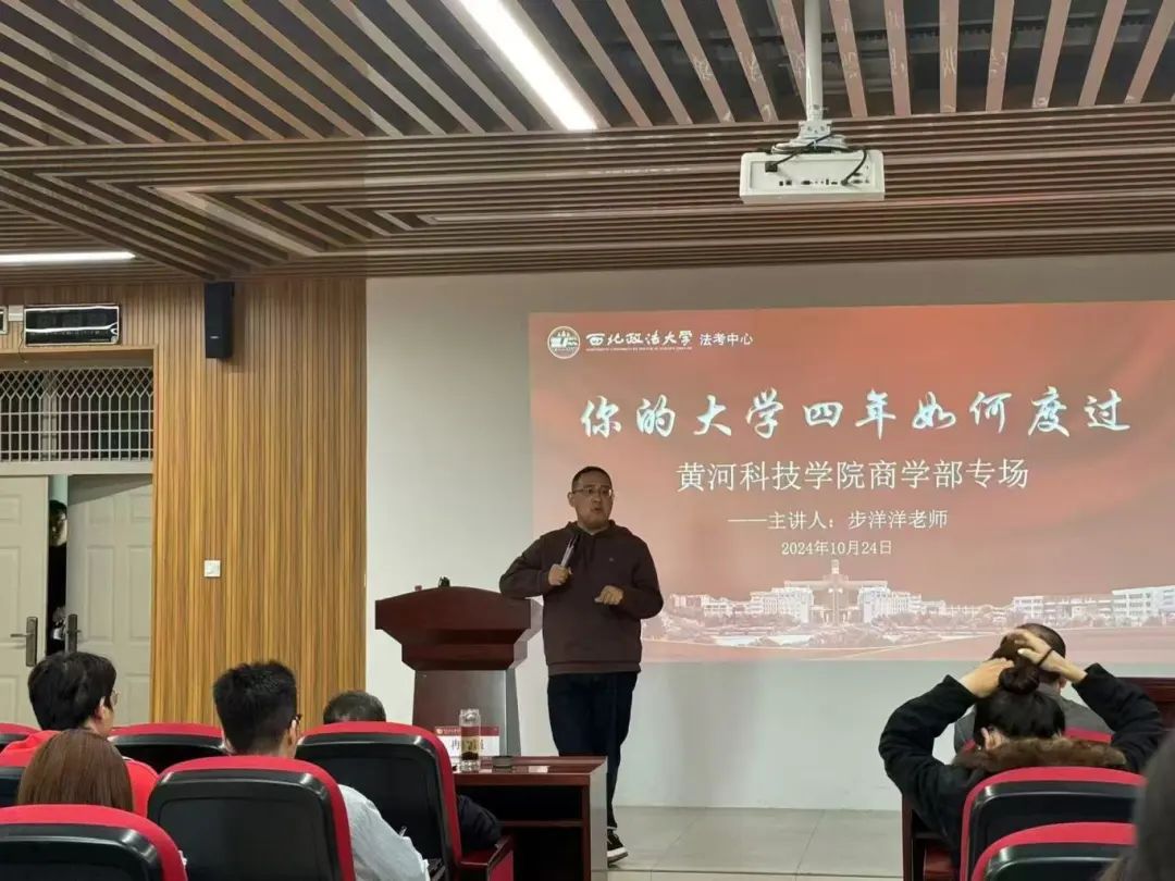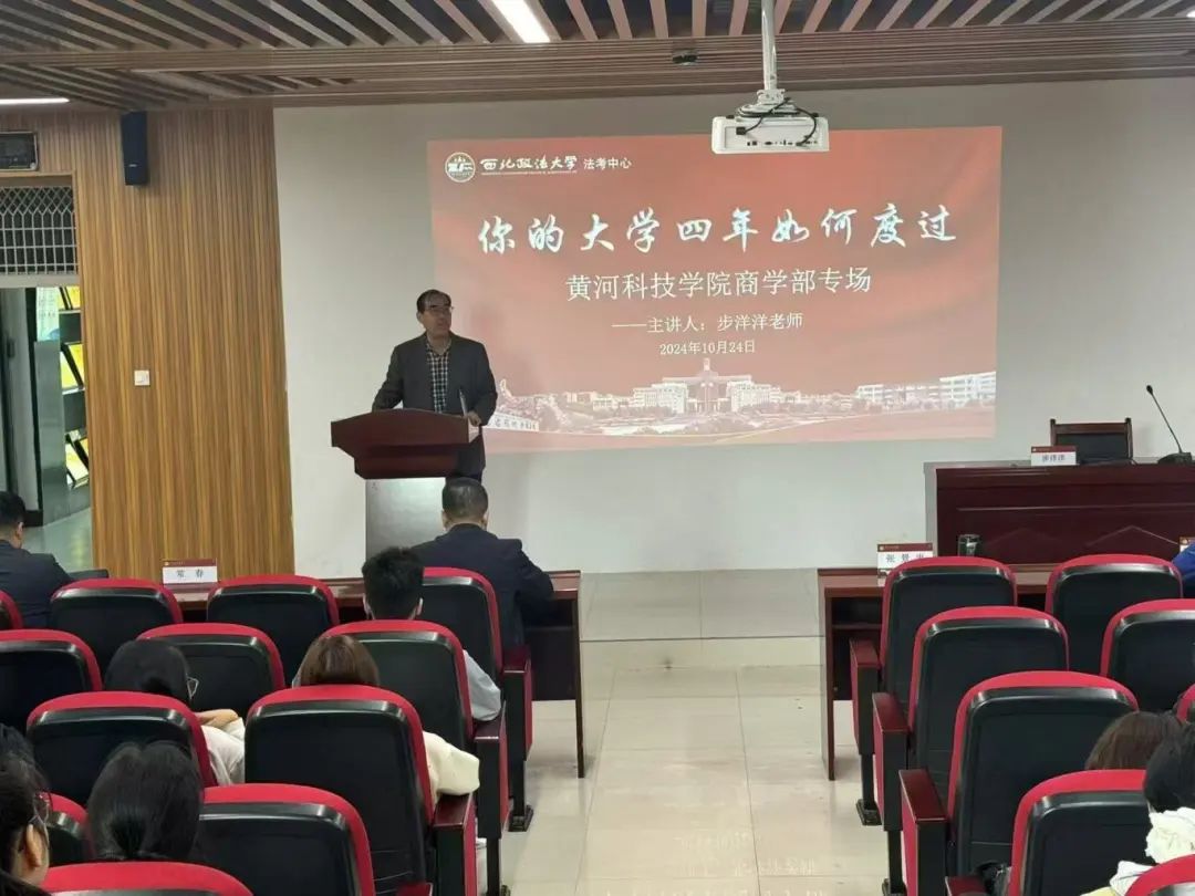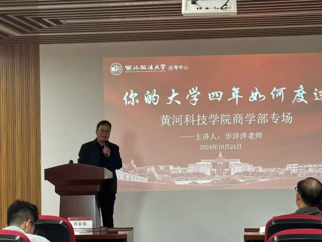 接着,西北政法大学步洋洋教授针对法学专业学生大学四年的学习规划和方法,从以下几个方面展开讲解。一、择校。在考研与法考同步进行的征程中,择校是一个关键的起始点。他指出,学子们需要综合多方面因素进行考量,深入研究院校的专业实力,了解其在法学教育领域的声誉和其师资力量,关注历年录取分数线和招生人数,分析自身的实力与院校要求的匹配度,确保目标既具有挑战性又切实可行。二、执行力。执行力是法考成功的核心保障。他强调,制定科学合理的学习计划只是第一步,更重要的是坚定不移地付诸实践,学子们要严格按照每日、每周的学习任务安排,有条不紊地推进学习进度。三、调节心态。法考备考是一场持久战,期间会面临各种压力和挑战,因此调节至关重要。他提到,心态调节是首要任务,当遇到学习困难或压力过大时,要学会积极应对。四、组成团队学习。他建议学子们在备考过程中能积极与他人合作,可以组建学习小组,小组成员之间相互交流学习心得,分享各自在学习过程中总结的方法和技巧,拓宽学习思路。最后,他鼓励广大学子在法考备考的道路上坚定信念,勇往直前,并祝愿学子们都能考上心仪的学校,开启辉煌的法律职业生涯新篇章。
