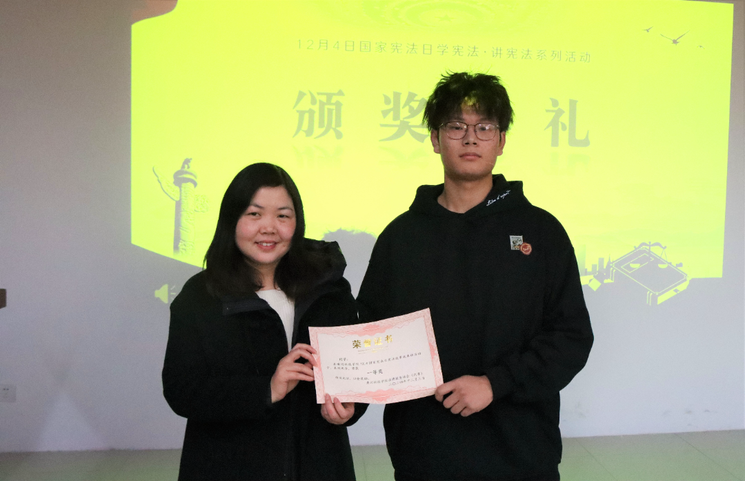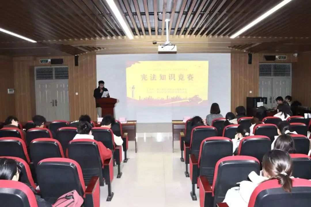 各组同学在小组长带领下,在人来人往的校园里开展普法调研。学生们手持访问资料和记录本,穿梭在人群中,向来往的各专业学生讲解法条、宣扬法治精神,大家被法学学生的热情和专业所吸引,纷纷停下脚步,认真回答,虽寒风萧瑟,但学生们的热情丝毫未减,继续交流分享着,记录法治的声音。宪法知识进校园,法治信仰驻心间12月3日,在《宪法学》课程刘洋老师指导下,24级法学学生在古天乐太阳集团城114报告厅举办国家宪法日的宪法知识竞赛活动。活动正式开始前由主持人安睿智同学宣读宪法知识竞赛的规则,竞赛过程中现场气氛紧张而激烈,台下的同学们都摩搓着双手,显得跃跃欲试。知识竞赛内容涵盖我国宪法中关于国家性质、国家基本制度、公民基本权利、国家机构等宪法知识。选手们准备充分,答题精准,展现出了较高的宪法素养。最终,经过激烈角逐,诞生此次竞赛的一等奖、二等奖和三等奖。