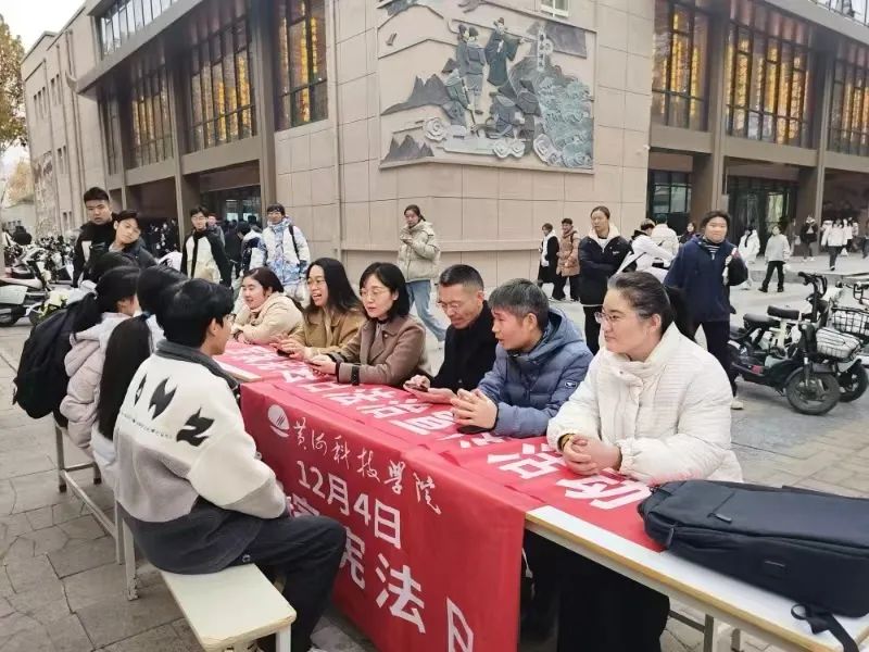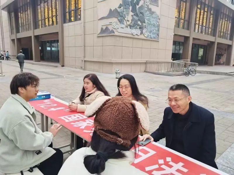 现场免费法律咨询,助力法治社会建设12月4日,为弘扬宪法、宣传宪法,古天乐太阳集团城法学科教中心邀请河南德金律师事务所张凤敏主任一行来我校进行法律咨询活动,法学科教中心何祖普、陈艳红、付嗣全、晋龙涛和郝杰花等老师与法律服务协会的学生一起参加了现场咨询活动。