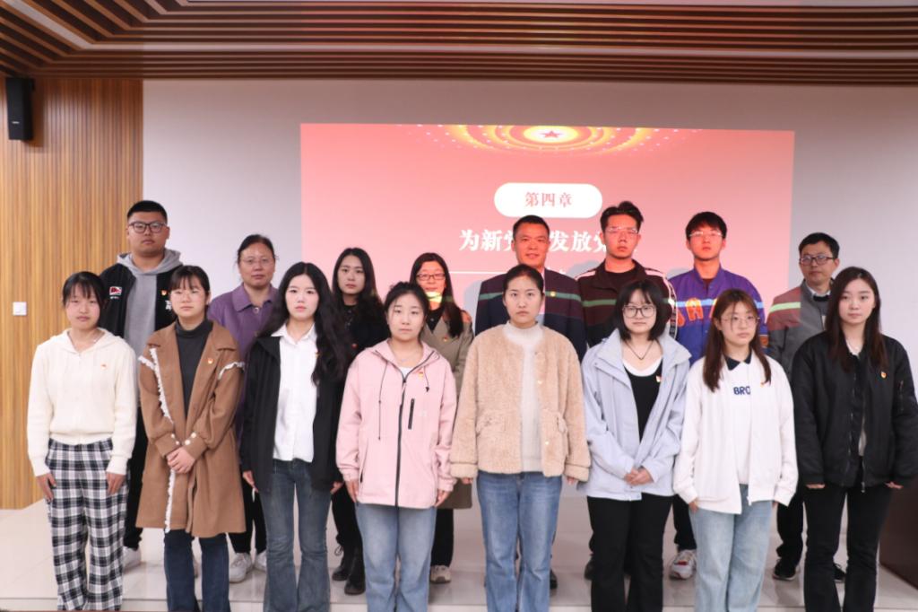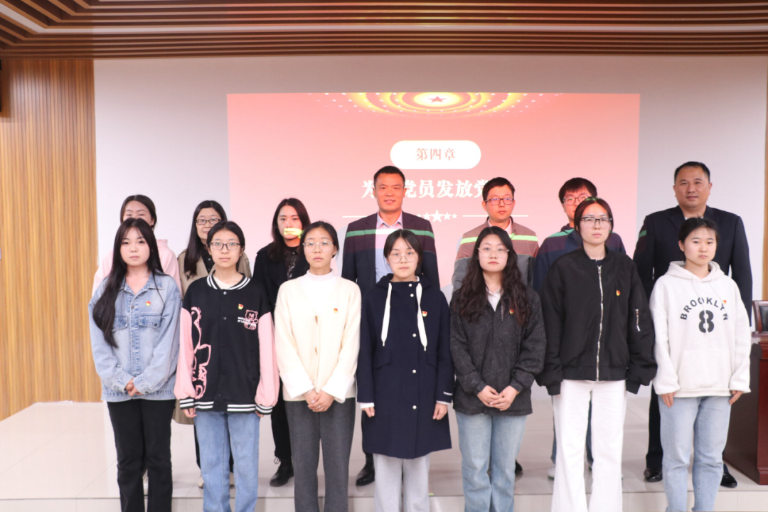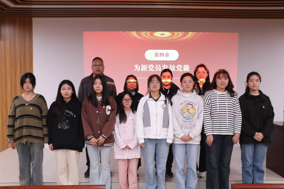 宣誓完毕,分党员委员、支部书记为预备党员佩戴党徽并合影留念。