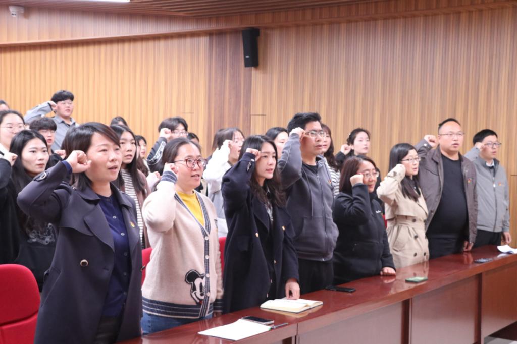 伴随着雄壮的国歌,大会进入到入党宣誓环节。张琳娜老师向同学们阐述了入党宣誓的重要性,并提醒各位预备党员们要不断学习理论知识,提高自身思想觉悟,时刻发挥党员先锋模范作用。