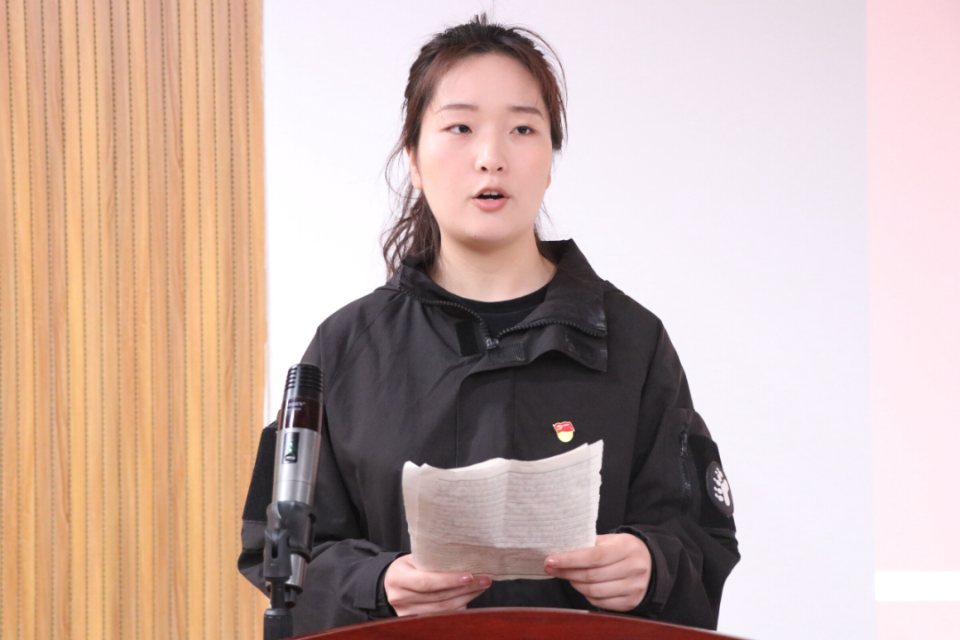 发言环节,预备党员李越代表全体新党员庄重承诺,今后将提升理论修养,充分发挥党员的先锋模范作用,以实际行动践行对党忠诚。