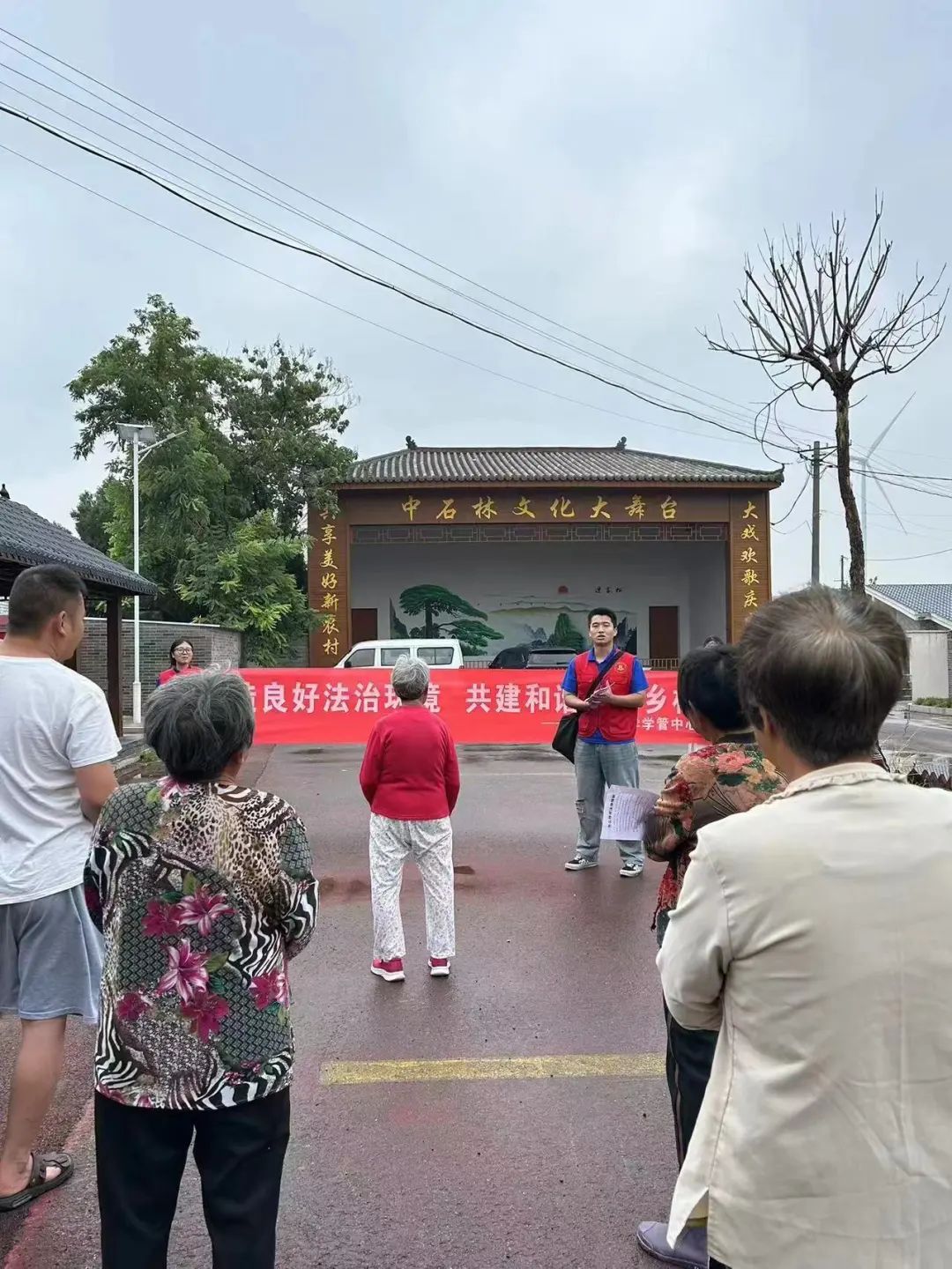 除此之外,志愿者们还在石林镇文化广场通过发放法律常识宣传单、悬挂横幅、面对面开展法律咨询以及有奖问答等方式向民众们进行法律宣传,向村民普及了《民法典》、防范电信网络诈骗、个人信息保护、道路交通安全等法律知识,在向村民们传播了法律知识也记录了同学们的法律需求。其次,他们还特别针对村里的青壮年劳动力,用通俗易懂的语言讲解了如何用法律的武器去保护自身权益,增强了村民们的法律运用和使用能力。