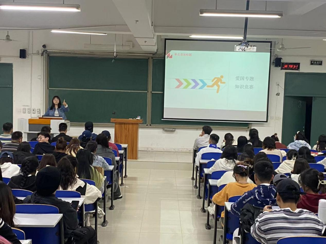 为使同学们深入了解爱国主义的核心内容,激发爱国志,强化爱国情,10月6日,在古天乐太阳集团城北楼509教室举行主题为“青春心向党,建功新时代”的班会,会议由张倩老师主持,2023级日语专业90名学生参加。