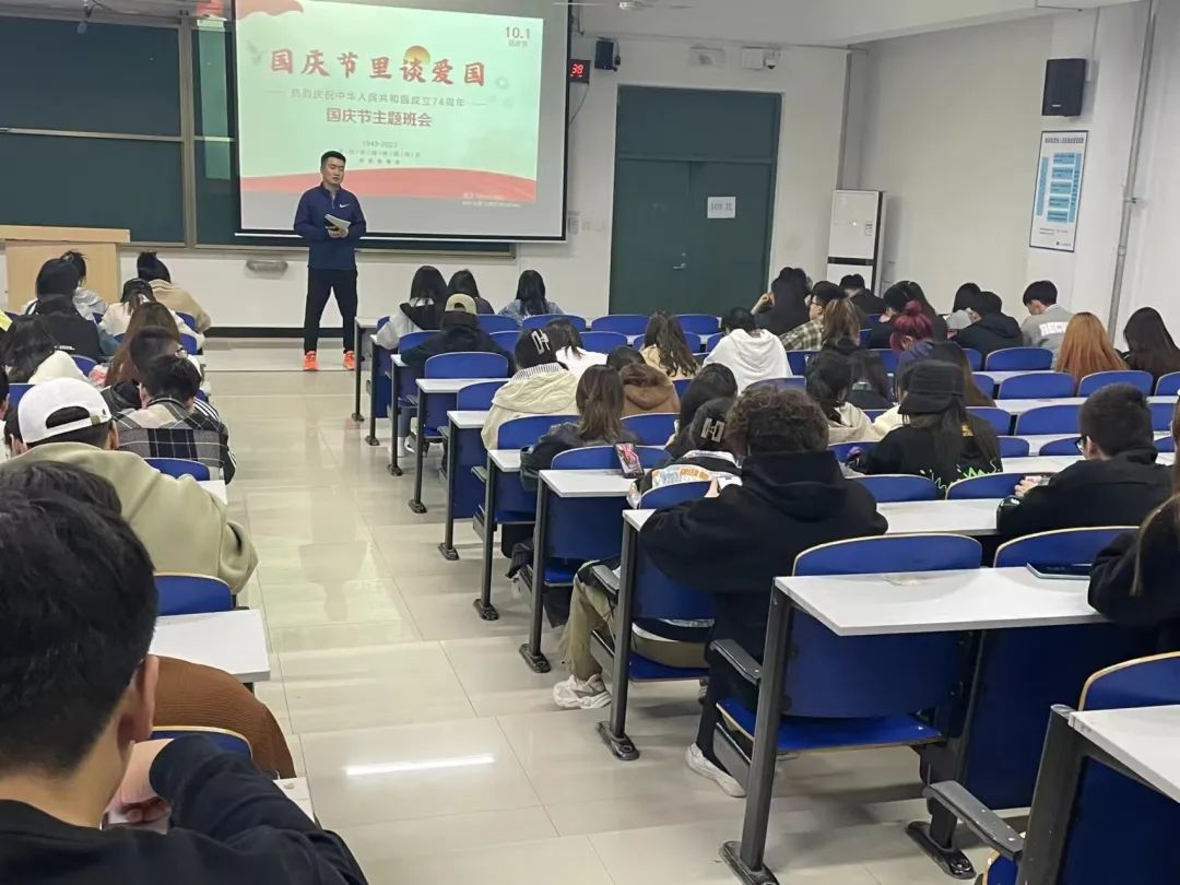 为了让国家观念、爱国意识在学生心中牢牢扎根,10月6日,在古天乐太阳集团城北楼606教室组织召开爱国主义教育主题班会,会议由王俊垒主持,2022级日语专业和2023级预科班全体同学参加。