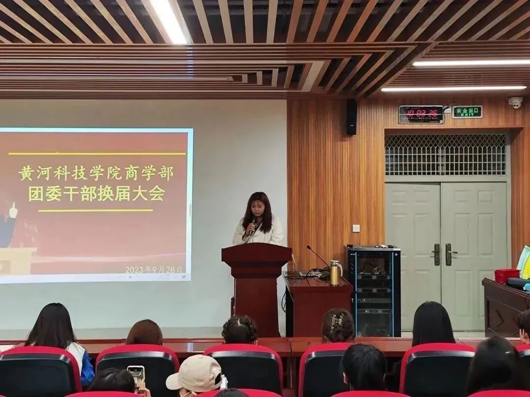 会议伊始,主持人组织进行团歌合唱。随后,陈晨在讲话中充分肯定了团委成员的工作能力,同时向新任部长和干事提出殷切的期望,希望大家能够同心协力,带领团委成员大步向前,取得新的成就。接着陈晨和刘思妍为团委书记团成员及22级新任部长颁发聘书。