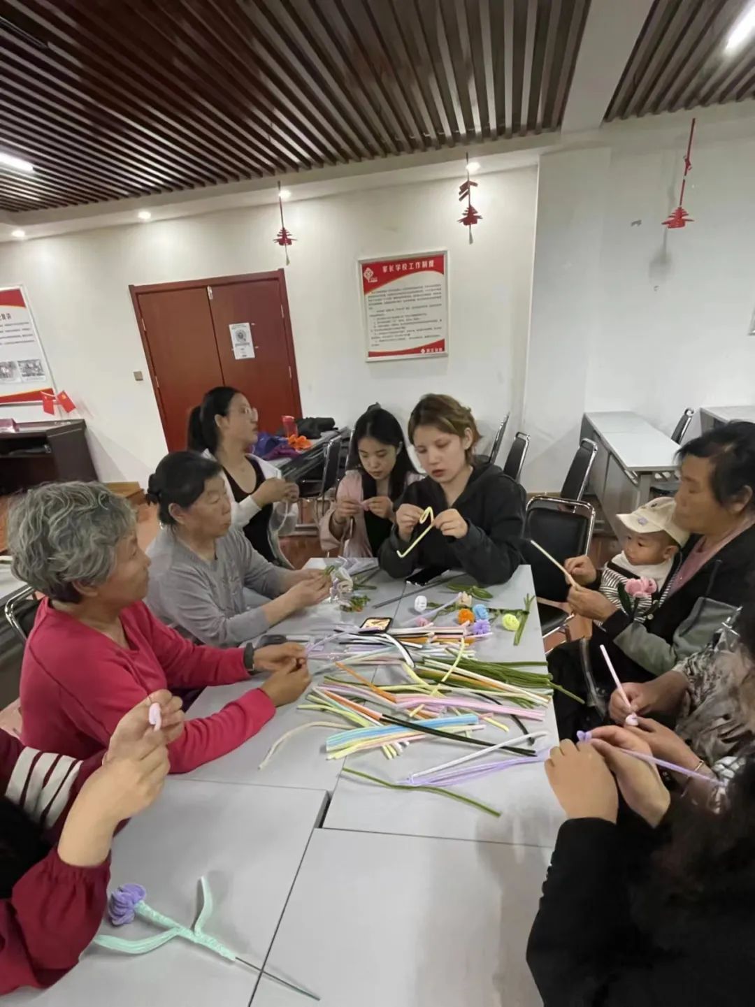 为了促进老年人社交互动,丰富精神生活,减轻孤单感,促进身心健康,4月29日,2021级社会工作专业学生联合漓江路党群服务中心开展了“春去夏来,留住春天”创意扭扭棒教学活动。